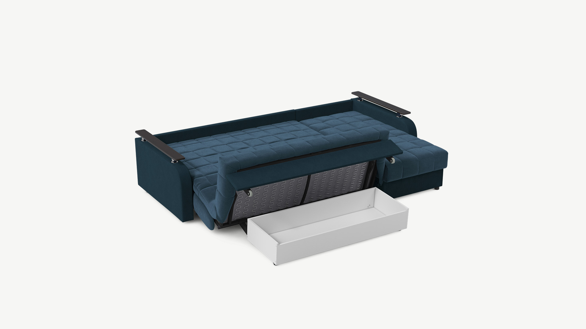 Оттоманка обеспечивает дополнительное пространство для отдыха, благодаря которому Вы можете располагаться с максимальным комфортом, вытянув ноги. Под данной секцией расположен вместительный бельевой короб.