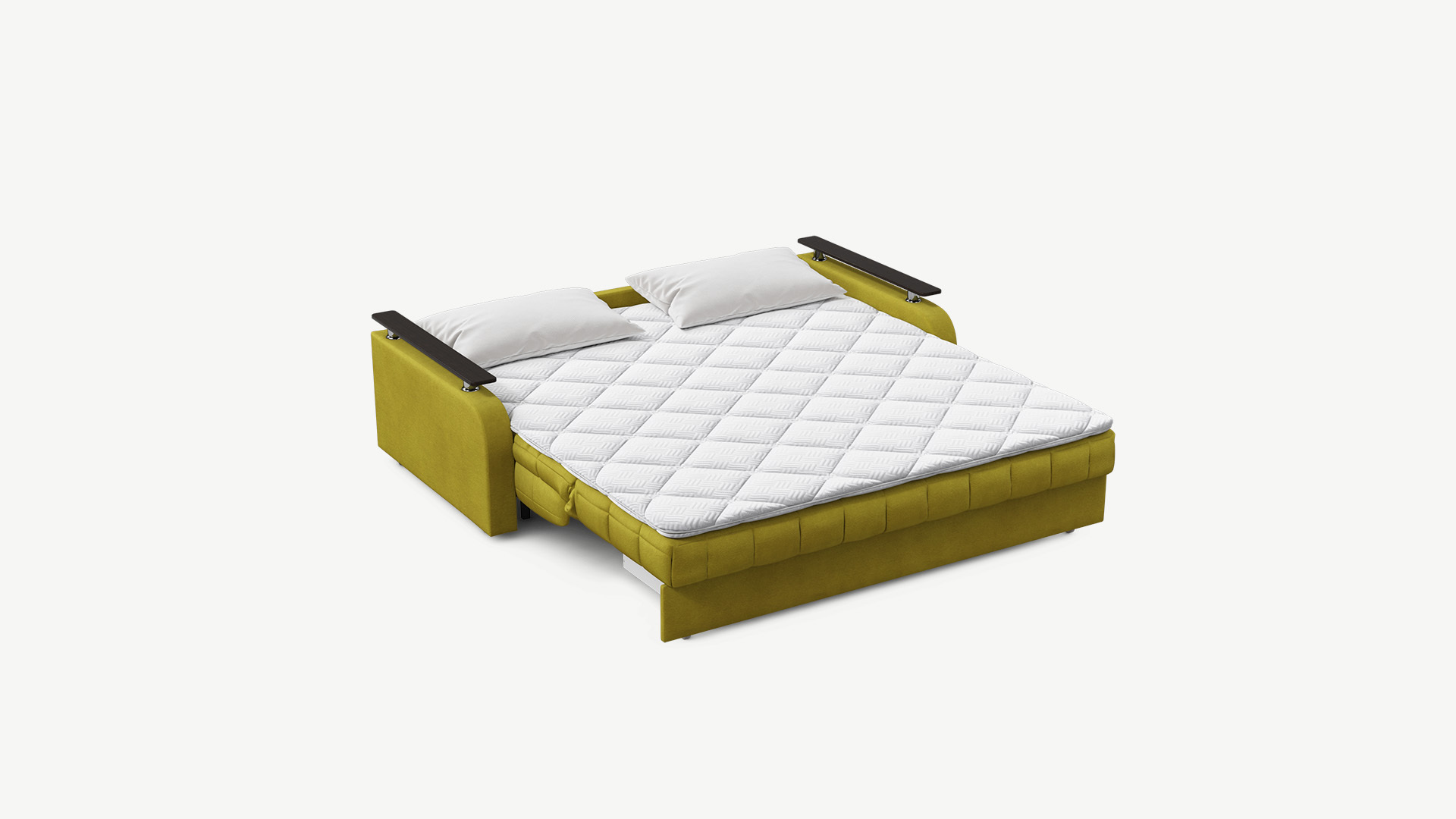 Достоинства: Красивый цвет, большое спальное место, легко раскладывается, отличное наполнение и каркас способствует хорошему отдыху и сну. Съёмный чехол, 2 подушки в комплекте.