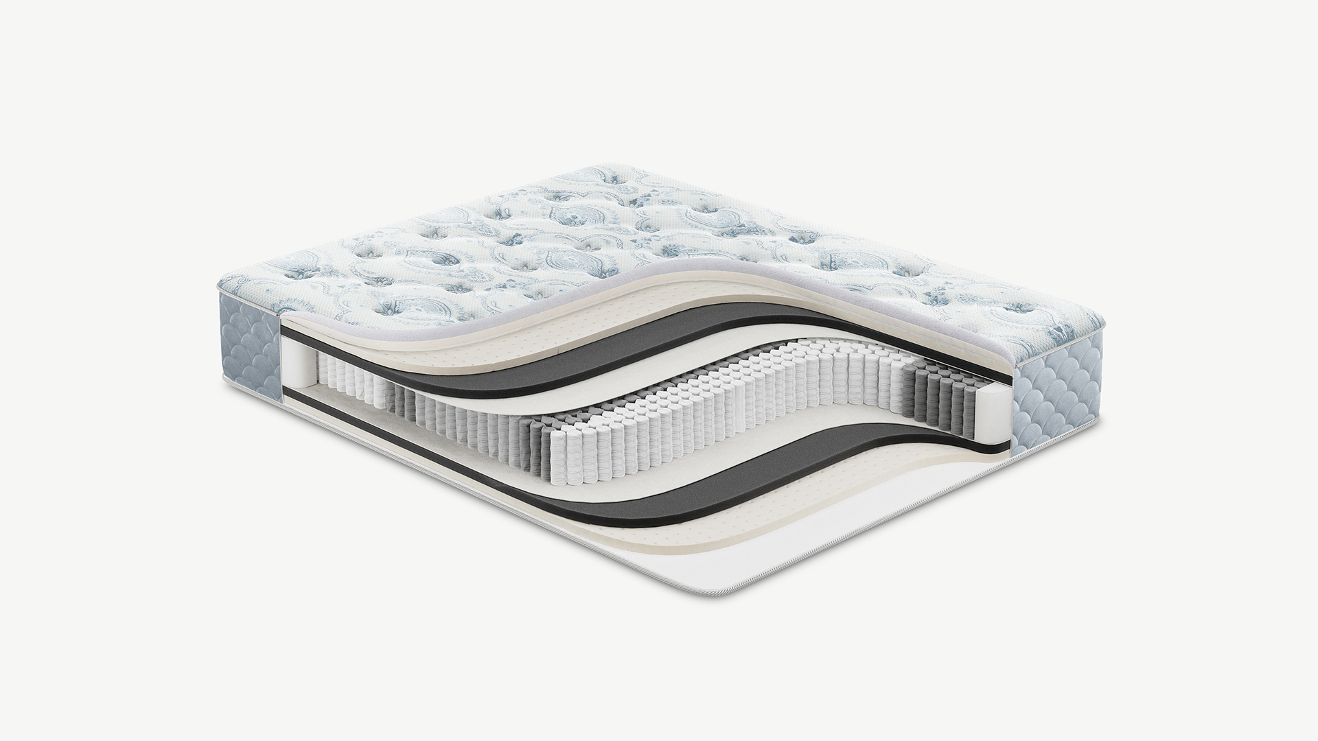Обеспечивает естественный воздухообмен и сохраняет форму матраса. Выполнен из плотного трикотажа, простеганного на слое упругой пены и искусственного объемного волокна. Точечная стежка поддерживает превосходный уровень комфорта и не позволяет наполнителю смещаться в процессе эксплуатации.
