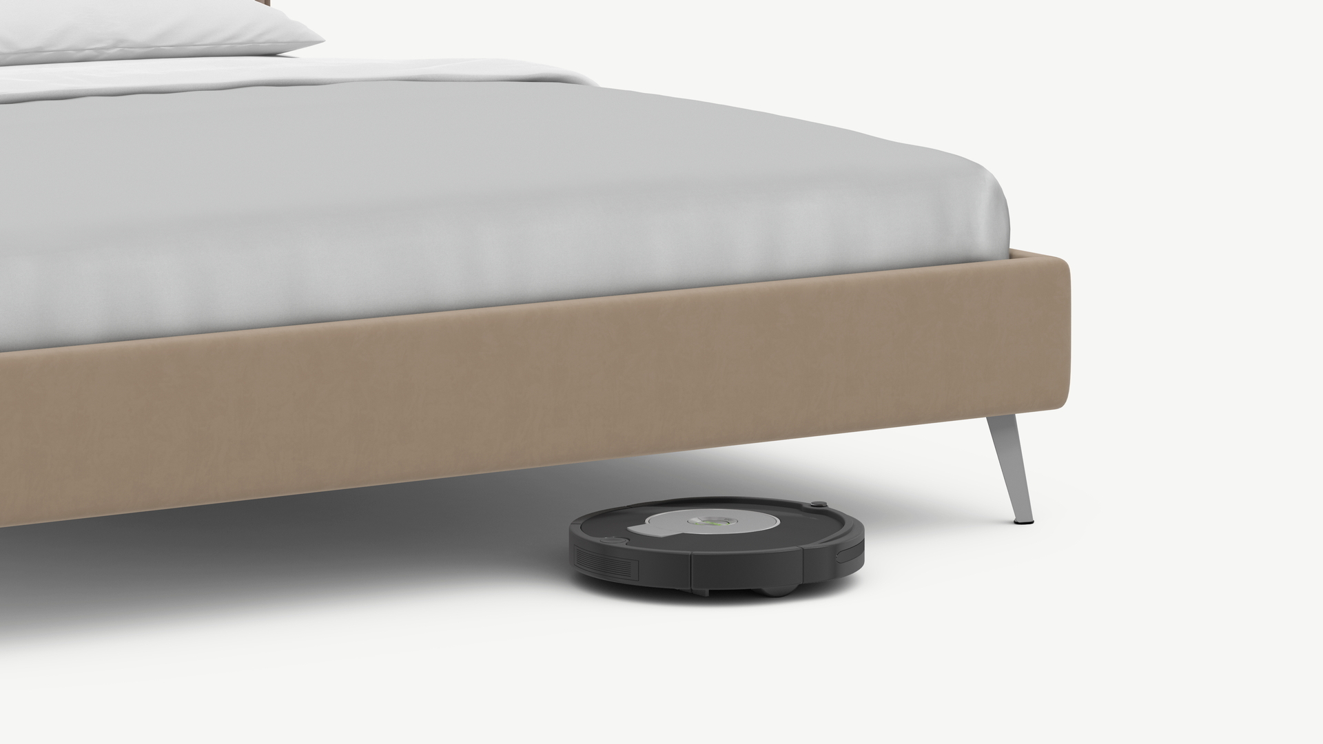 Высокие металлические опоры наклонной формы создают над полом достаточный просвет для движения робота-пылесоса, что помогает поддерживать чистоту и порядок в доме.