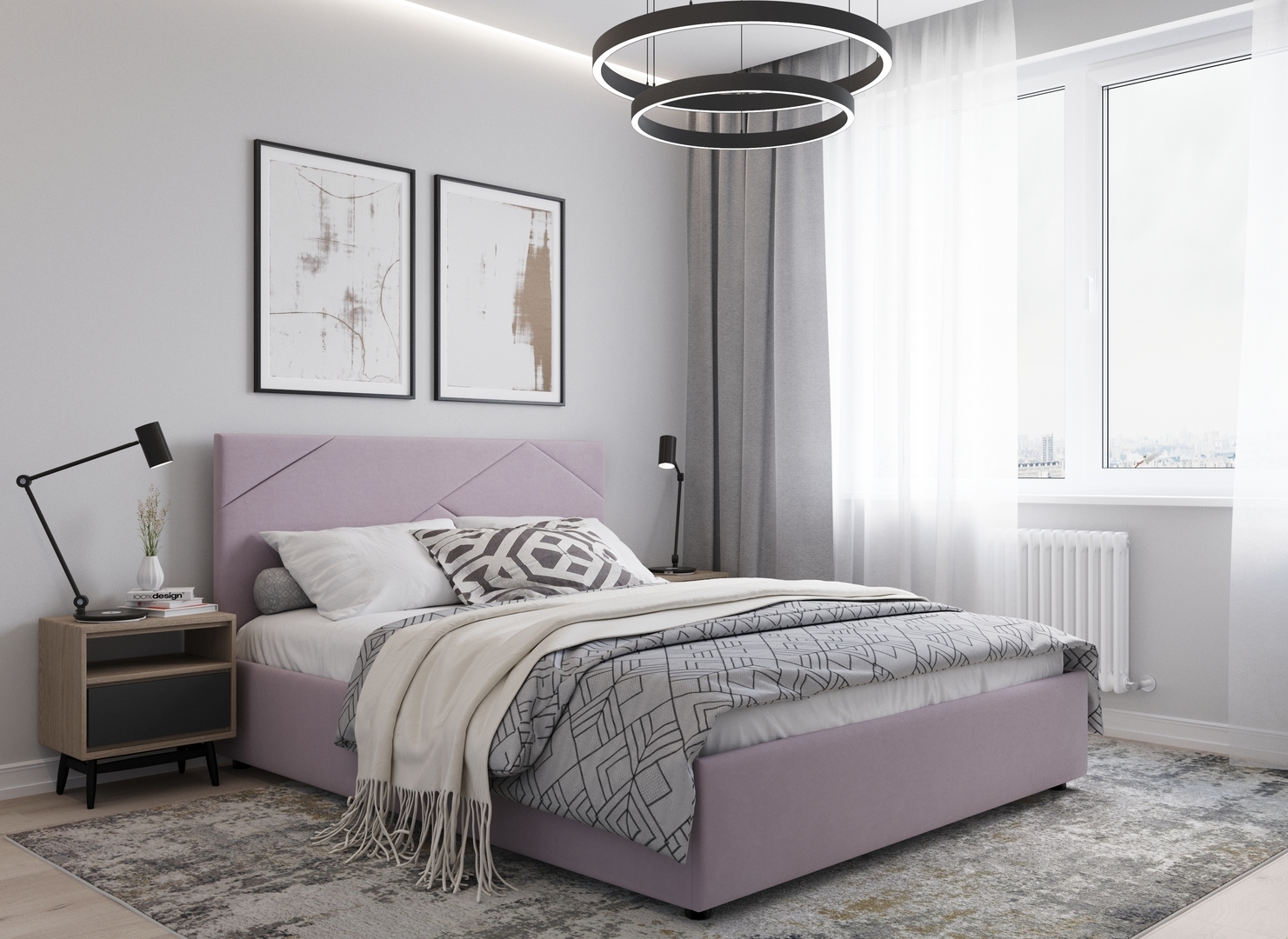 Кровать с подъёмным механизмом с выбором опорMOON FAMILY 1257 привлекает внимание оригинальным исполнением: широкие полосы ткани эффектно пересекают периметр изголовья, создавая на нем графический орнамент. Лаконичные формы объемных царг создают единый гармоничный образ и фокусируют внимание на центральном текстурном элементе кровати.