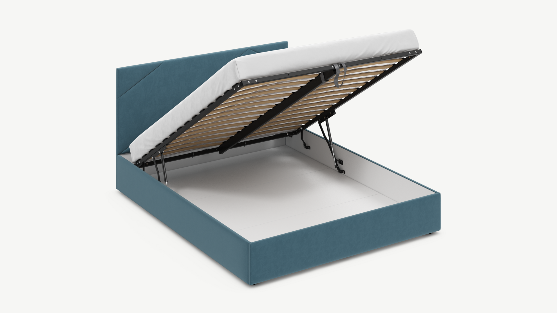 - Скрытая под основанием вместительная емкость без внутренних перегородок позволяет использовать всю площадь подкроватного пространства для хранения вещей.