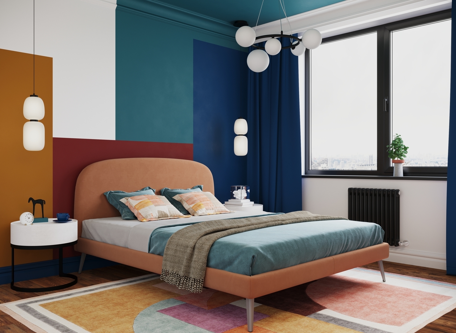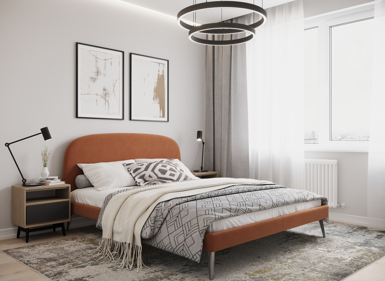 Создать гармоничный интерьер и завершить образ спальни помогут дополнительные аксессуары, например: тумбы, банкетки, подушки.