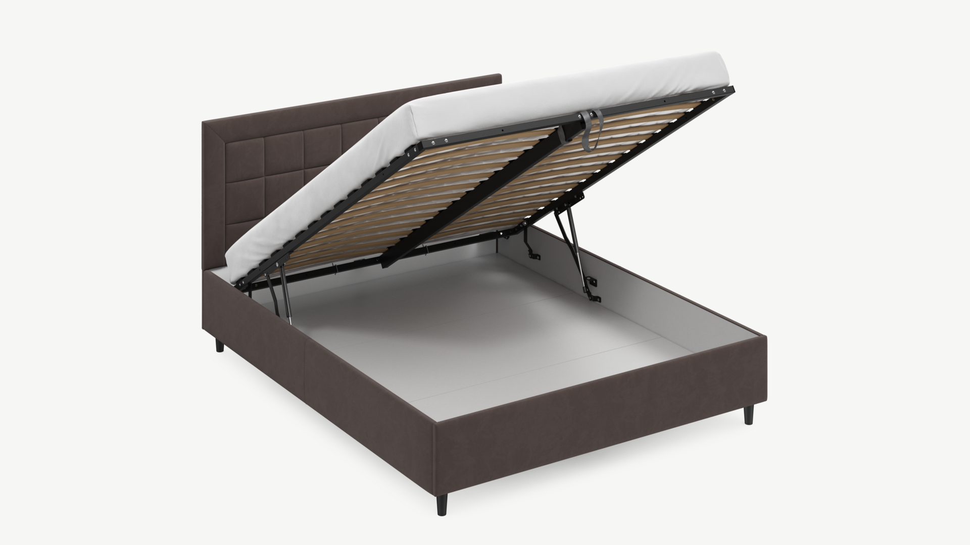 • Скрытая под основанием вместительная емкость без внутренних перегородок позволяет использовать всю площадь подкроватного пространства для хранения вещей.