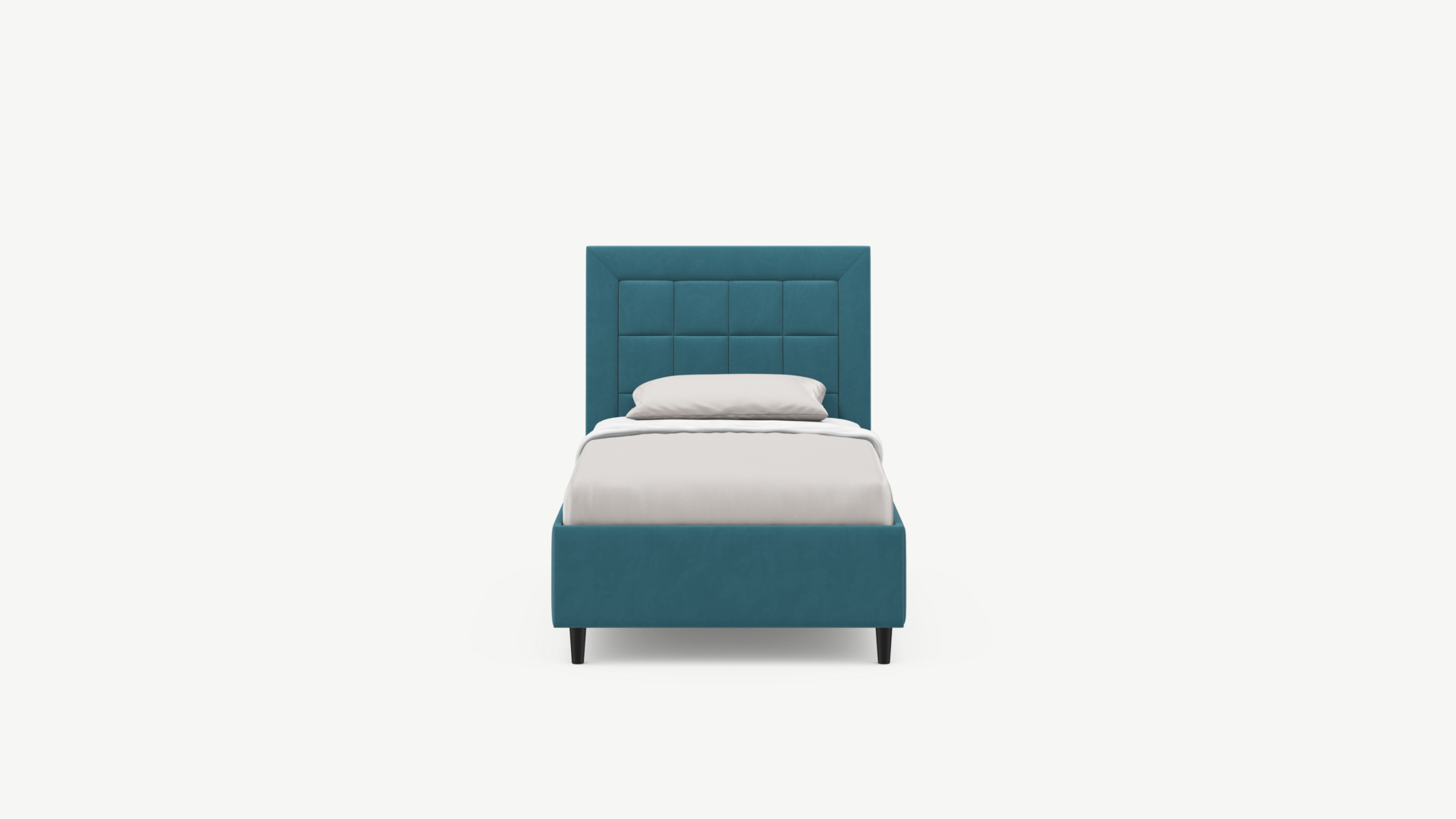 Изголовье декорировано рельефным рисунком стежки в крупный квадрат, получившим особую фактуру за счет глубины шва.