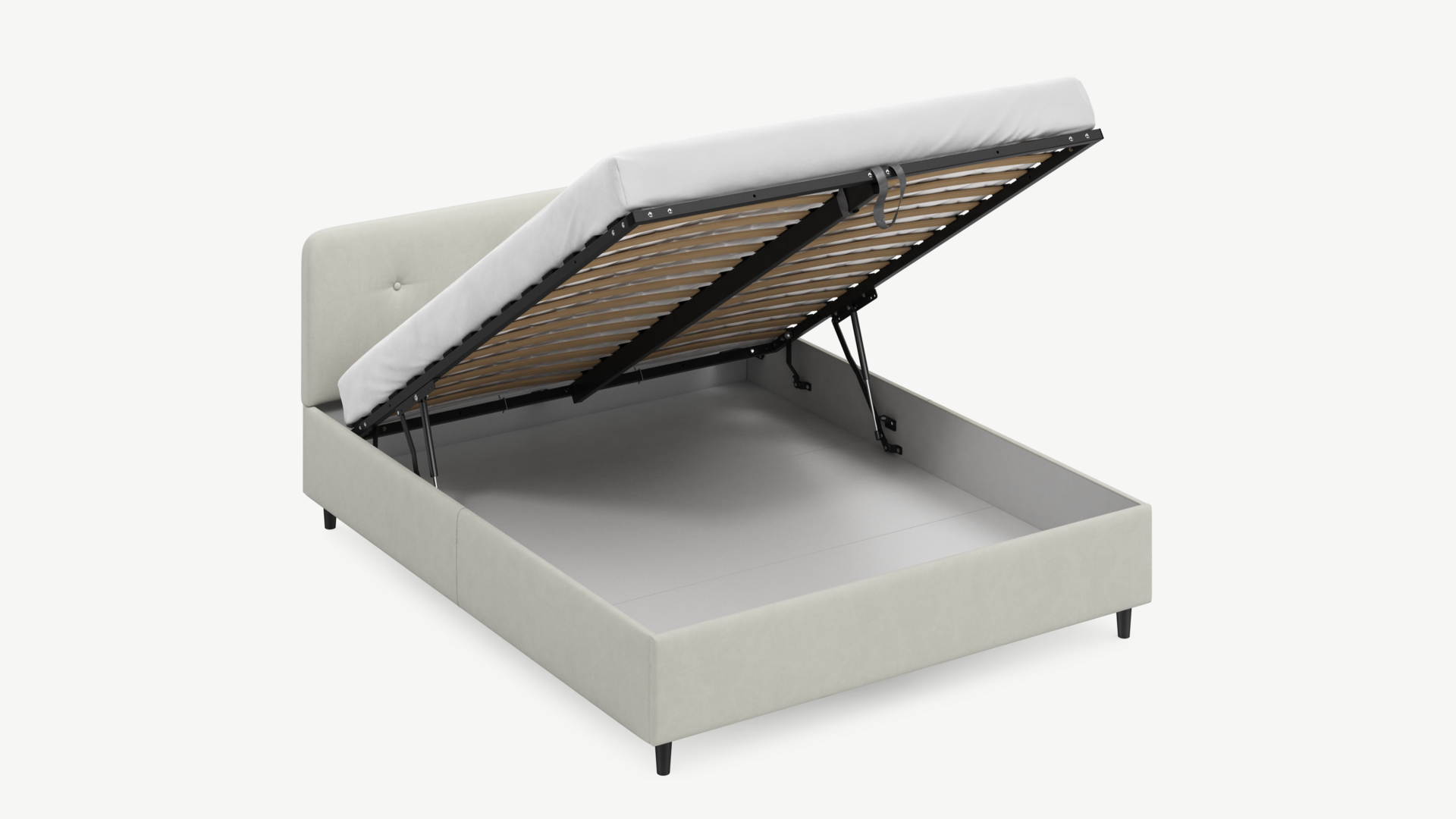 • Скрытая под основанием вместительная емкость без внутренних перегородок позволяет использовать всю площадь подкроватного пространства для хранения вещей.