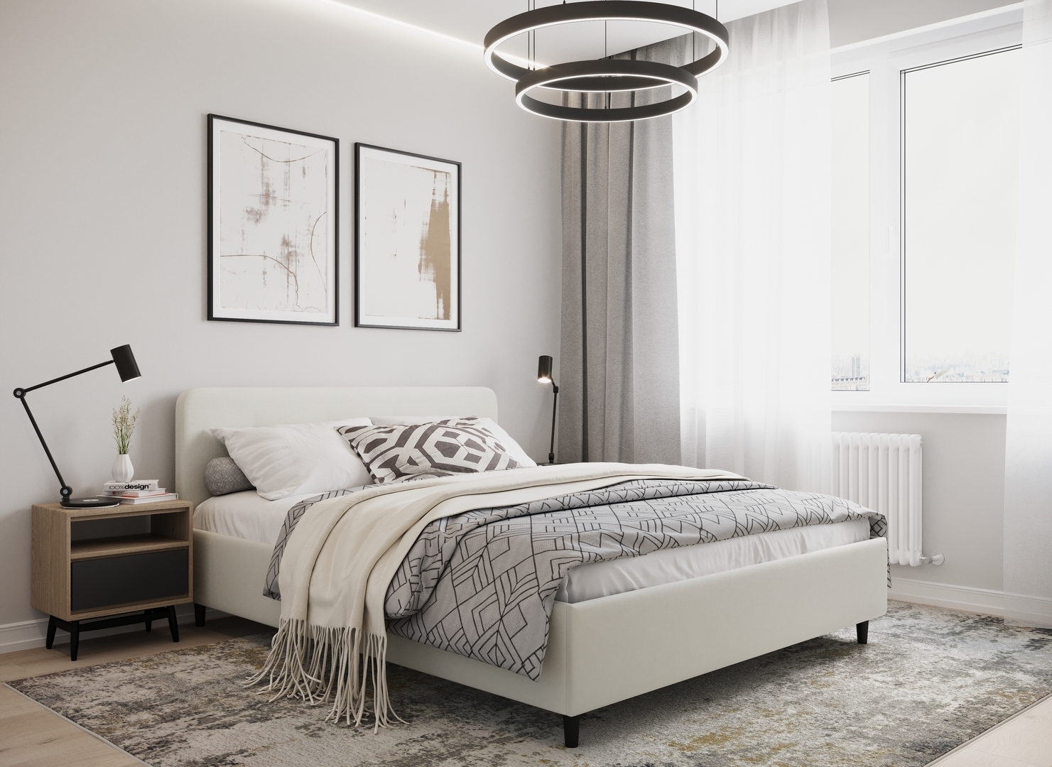 Создать гармоничный интерьер и завершить образ спальни помогут дополнительные аксессуары, например: тумбы, банкетки, подушки.