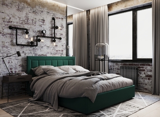 Стежка помещена в центр изголовья и обрамлена, словно картина. Объемные царги становятся гармоничным дополнением образа и завершают цельную фигуру кровати.