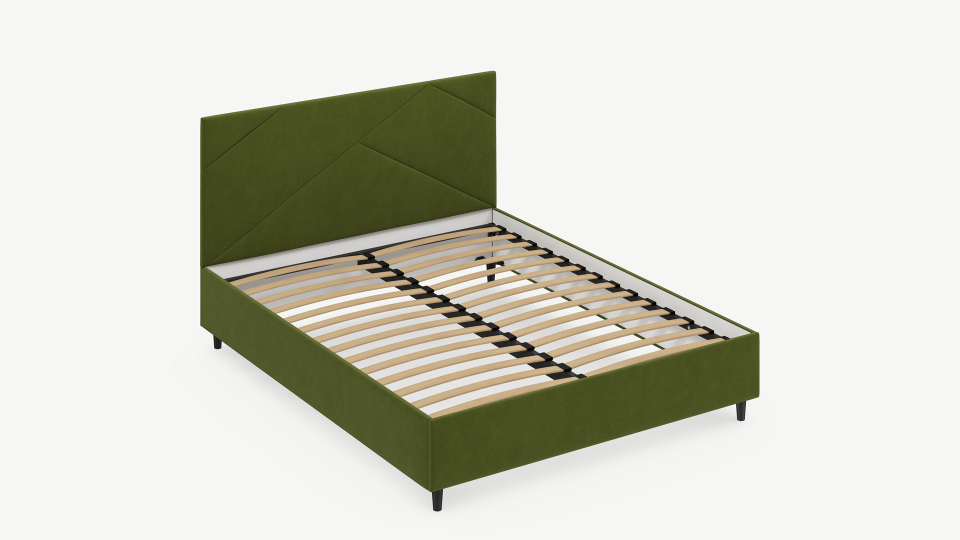 MOON FAMILY 1257 привлекает внимание оригинальным исполнением: широкие полосы ткани эффектно пересекают периметр изголовья, создавая на нем графический орнамент. Лаконичные формы объемных царг создают единый гармоничный образ и фокусируют внимание на центральном текстурном элементе кровати.