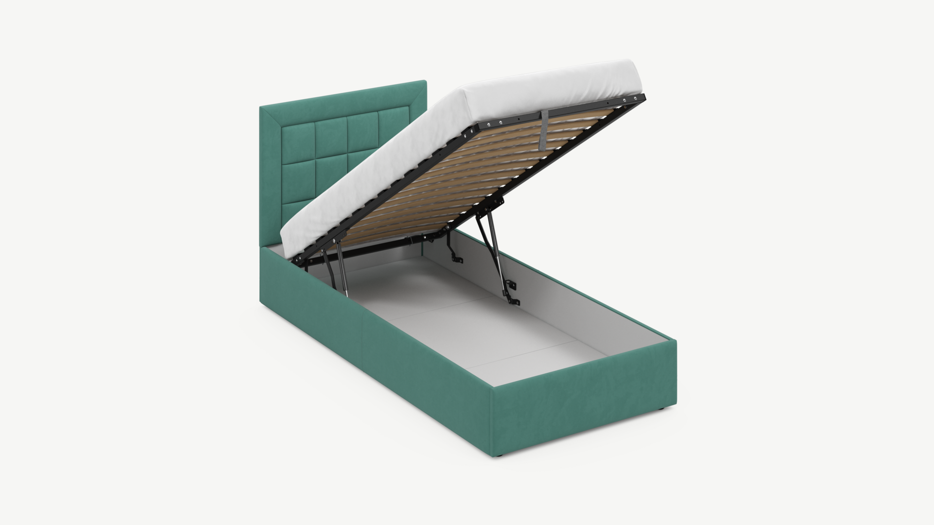 - Скрытая под основанием вместительная емкость без внутренних перегородок позволяет использовать всю площадь подкроватного пространства для хранения вещей.