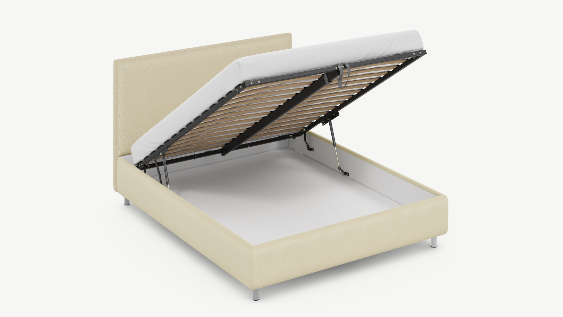 - Скрытая под основанием вместительная емкость без внутренних перегородок позволяет использовать всю площадь подкроватного пространства для хранения вещей.