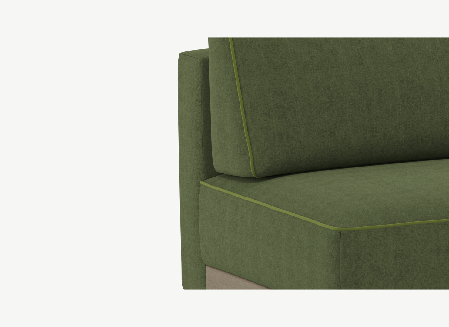 Декоративный кант, проходящий по элементам дивана, подчеркивает форму, усиливая эстетику образа.