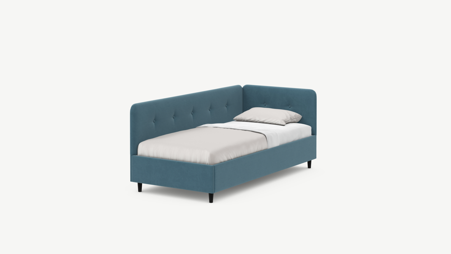 Кровать угловая с подъемным механизмомУгловая односпальная кровать MOON FAMILY 1253 с мягкой спинкой и изголовьем обладает округлыми формами, привносящими в интерьер нотки нежности. Изголовье, украшенное пуговицами, добавляет окружающему пространству шарм и уют. Высокие опоры придают кровати визуальной легкости, а также обеспечивают удобство во время уборки.