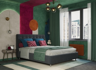 Заказали кровать с подушками-валиками, очень необычный дизайн нам показался. Выбрали высокие опоры для удобства в уборке, а изголовье не стали брать высокое, больше понравился низкий вариант. Приятно, что в магазине большой выбор тканей и цветов. Мы выбрали яркий бирюзовой, в нашей комнате кровать выглядит просто потрясающе! Кровать стала ярким акцентом. Это очень круто, что компания дает возможность сделать интерьер таким, как хочется. По качеству также нет претензий. Обита ровно, ни складок не, ни неровностей. Ламели ровные, матрас на них лежит идеально. Мы остались довольны, всем рекомендуем к покупке.