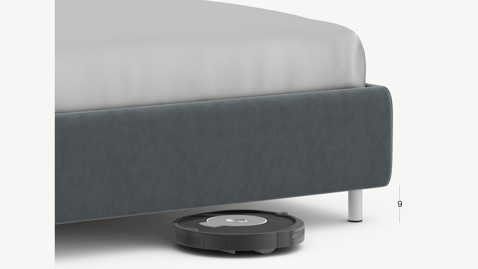 Высокие металлические опоры создают над полом достаточный просвет для движения робота-пылесоса, что помогает поддерживать чистоту и порядок в доме.