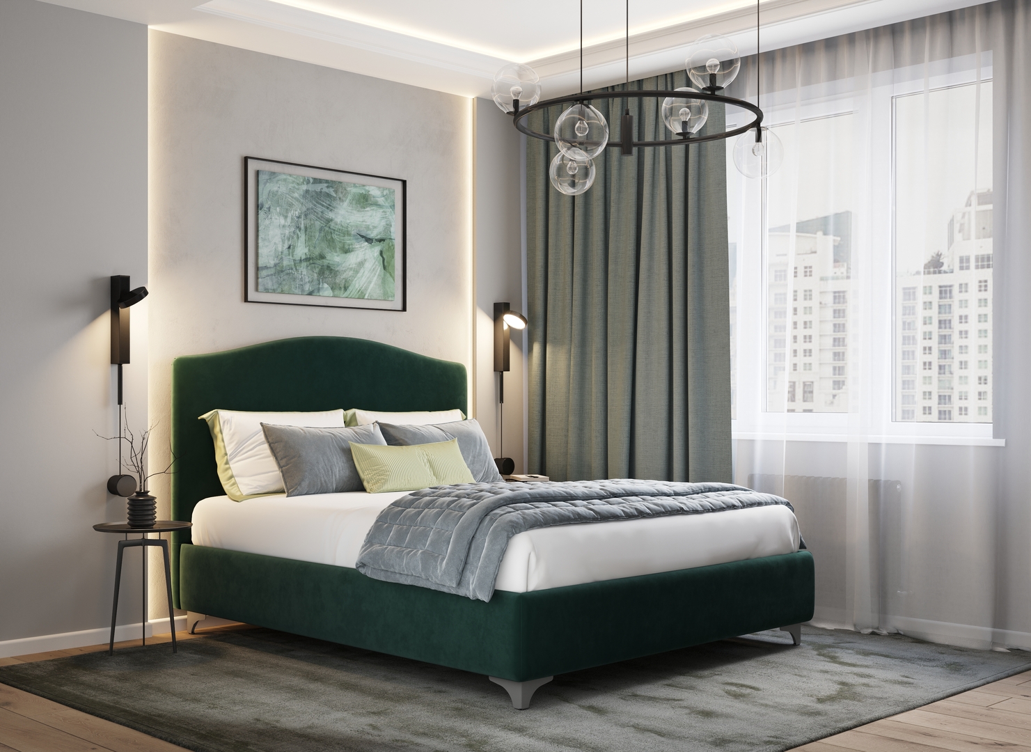 Разнообразие цветовой палитры позволит подобрать желаемый оттенок обивочного материала. Использование светлых цветов поддержит настроение стиля «Сканди». Нейтральные оттенки в цвет интерьера обыграют спальню в Современном стиле.