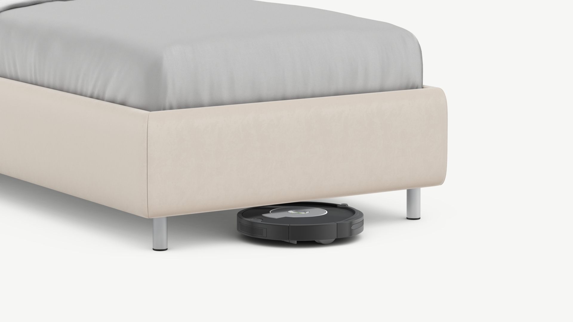 Металлические опоры создают над полом достаточный просвет для движения робота-пылесоса, что помогает поддерживать чистоту и порядок в доме.