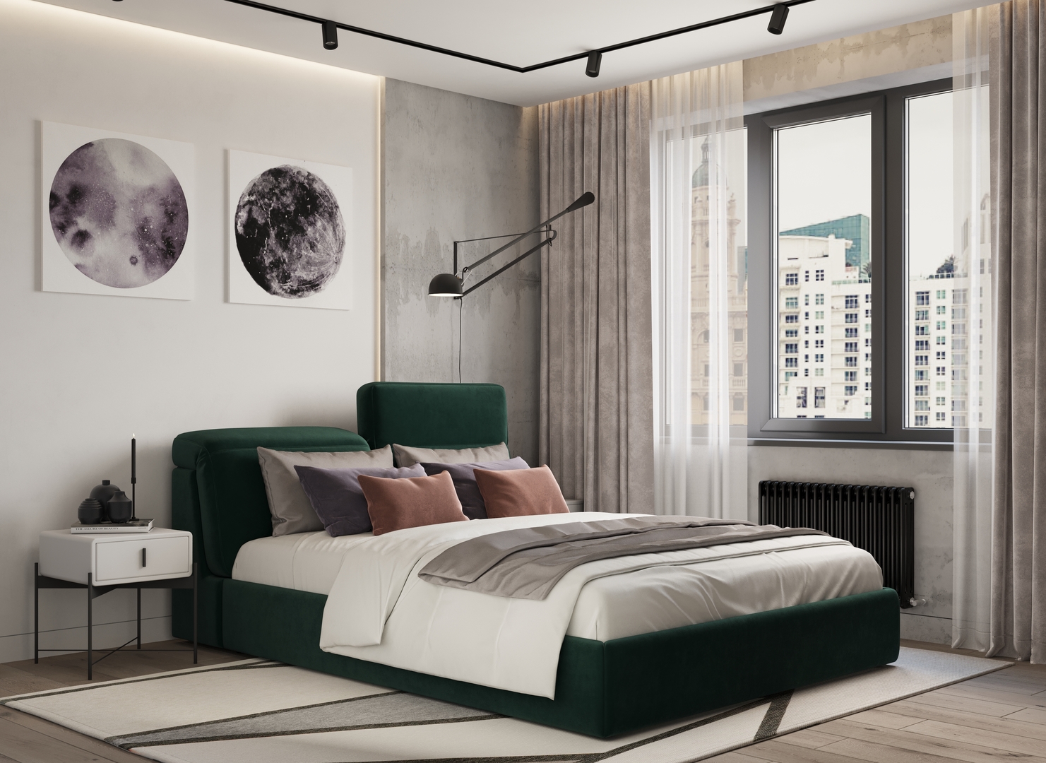 Для оформления кровати наши дизайнеры рекомендуют однотонный велюр, который придает MOON 1107 элегантную утонченность.