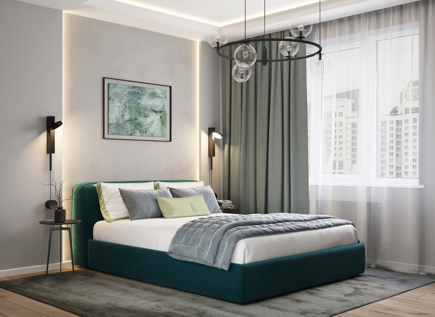 Подчеркнуть образ MOON 1008 и добавить пространству утонченности позволит однотонный велюр.