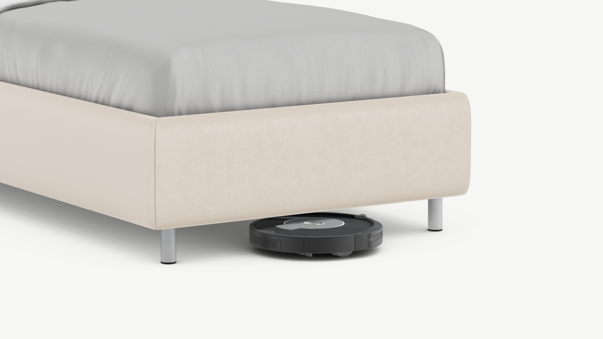 Металлические опоры создают над полом достаточный просвет для движения робота-пылесоса, что помогает поддерживать чистоту и порядок в доме.